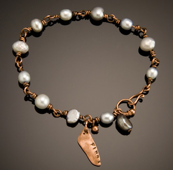 earrings necklaces pins bracelets bridal Copper with silver colored freshwater pearls with "first" charm $90 + add to cart